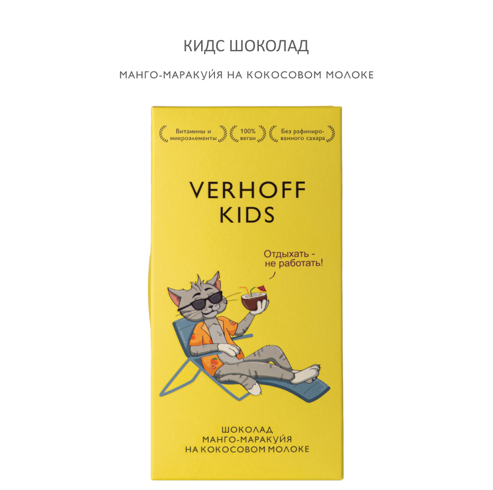Он путешествовал по всему миру в поисках самых сочных фруктов и самого яркого солнца! Он мечтал отдыхать и загорать, наслаждаясь волнами вкусов. И вот, на краю света, в тропиках он добыл кусочек сочного шоколада VERHOFF КИДС, созданного из манго и маракуйи, а вместо надоевшего ему молока — мякоть кокоса. С тех пор его жизнь изменилась. Теперь он каждый день отдыхает, наслаждаясь вкуснейшими и полезными тропическими фруктами...
