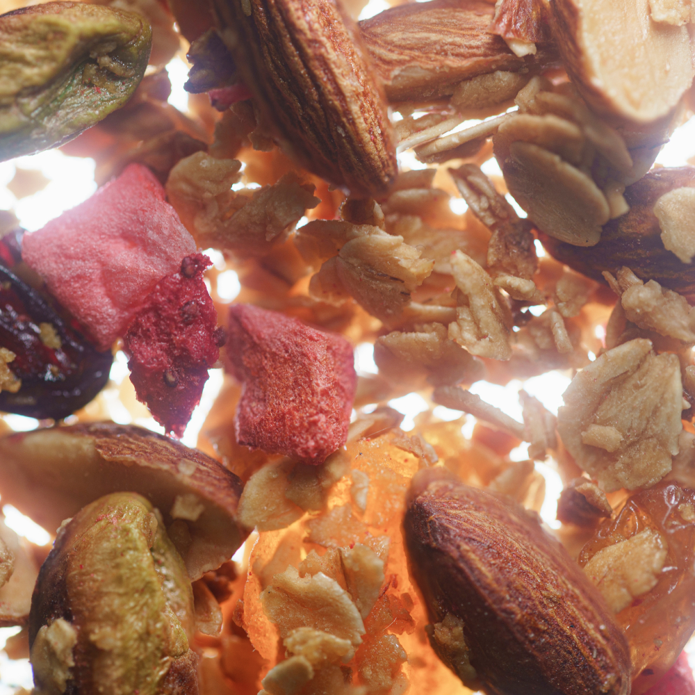Приготовлена по традиционному рецепту из самых превосходных и натуральных ингредиентов. Мы создаём гранолу вручную при деликатных температурах, сохраняя всю гамму полезных свойств и микроэлементов.