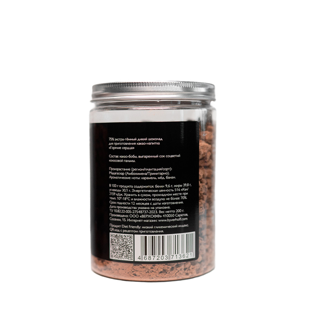 Какао VERHOFF — это высокая гастрономия. Вечер за бокалом такого напитка из настоящего шоколада наполнится новыми вкусовыми впечатлениями и яркими эмоциями.75% дикий шоколад для приготовления какао-напитка.